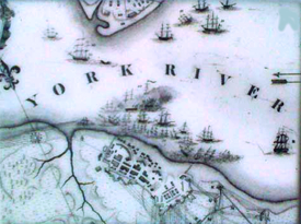 When the Charon was bombarded by hot shot from the French, it drifted across the river and sank beyond the point. That’s contrary to the belief Cornwallis took it intentionally out of harm’s way to avoid the allied bombs.