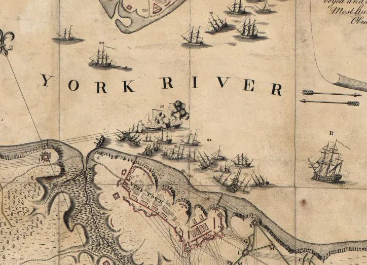 The British won the smaller first Battle of the Capes in March 1781 before the big one in September, where the French prevailed. When the French deployed four man-of-war battleships at the end of the York River, Steen said Cornwallis partially sunk 24 of his transport ships to form a line of defense. This differs from the 10 ships usually cited. “They were only in 15 feet of water, at the very edge of the river but with their spars and masts upright in defense.”