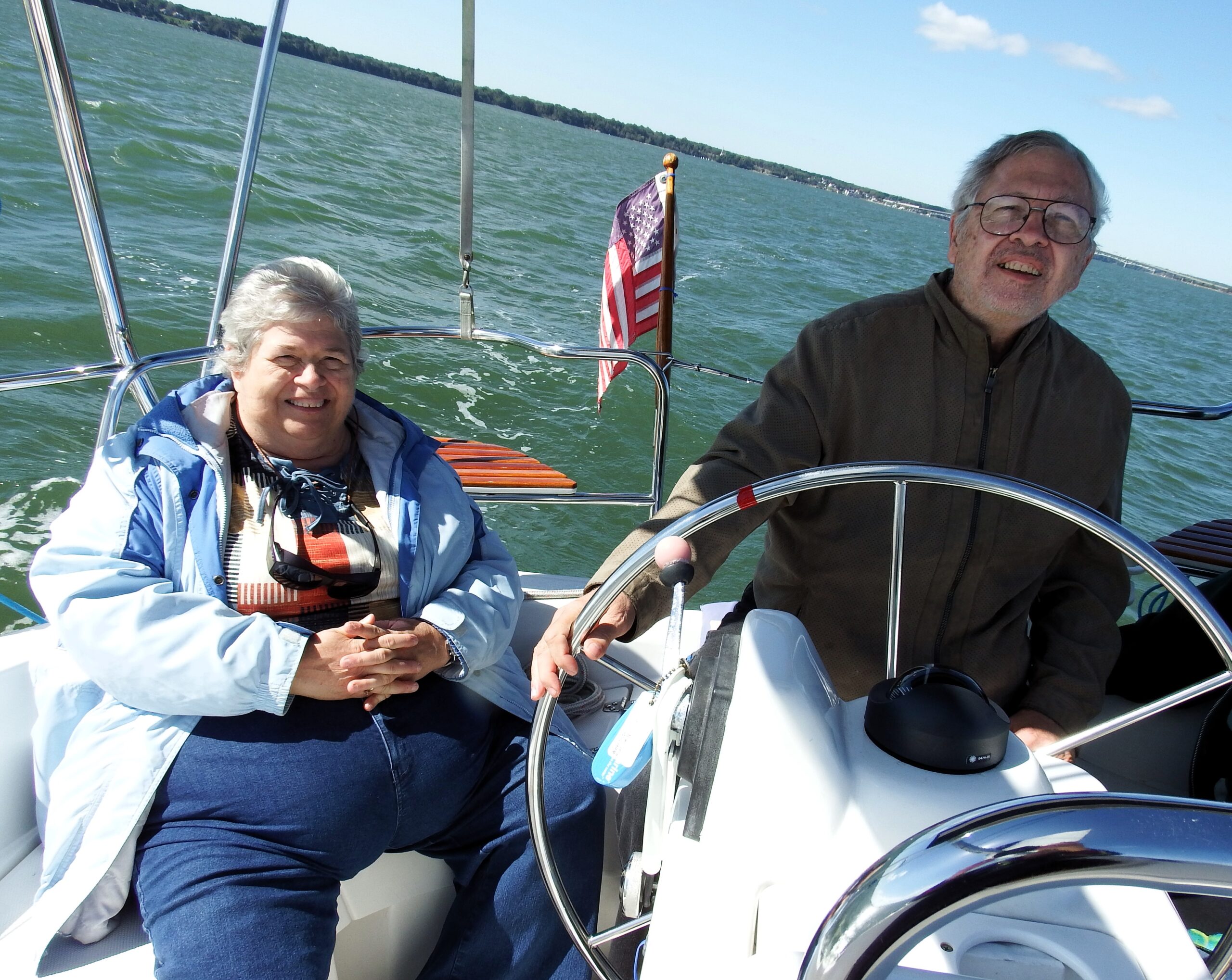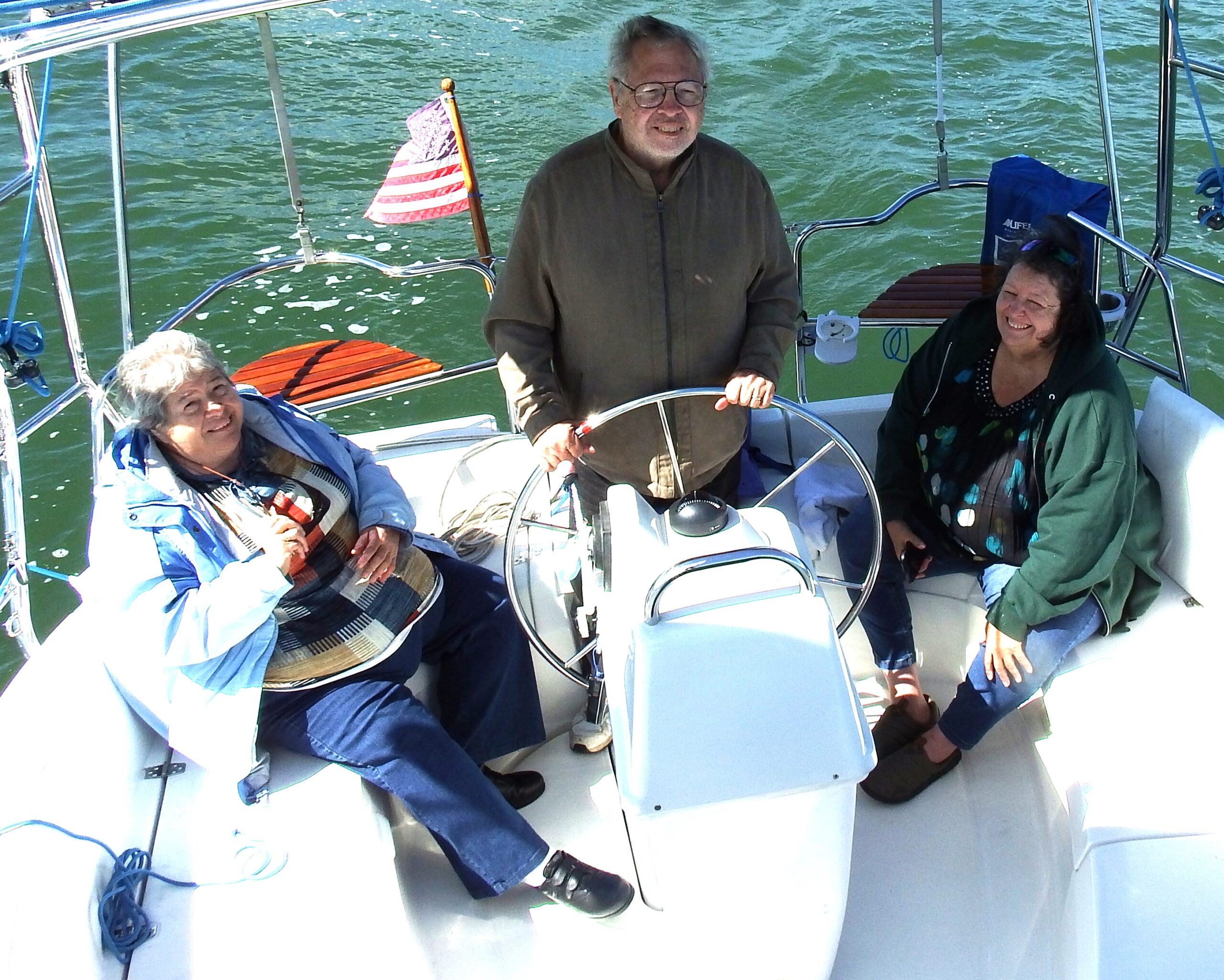 Three related people chose a magnificent fall afternoon to sail the York. Arden Jensen helmed us in brisk winds, proceeding up to NWS to see the ever-present US Navy submarine. It never fails to astonish people.